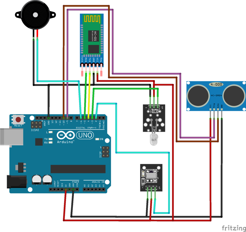• HC-05 Bluetooth module is connected to Arduino digital pins