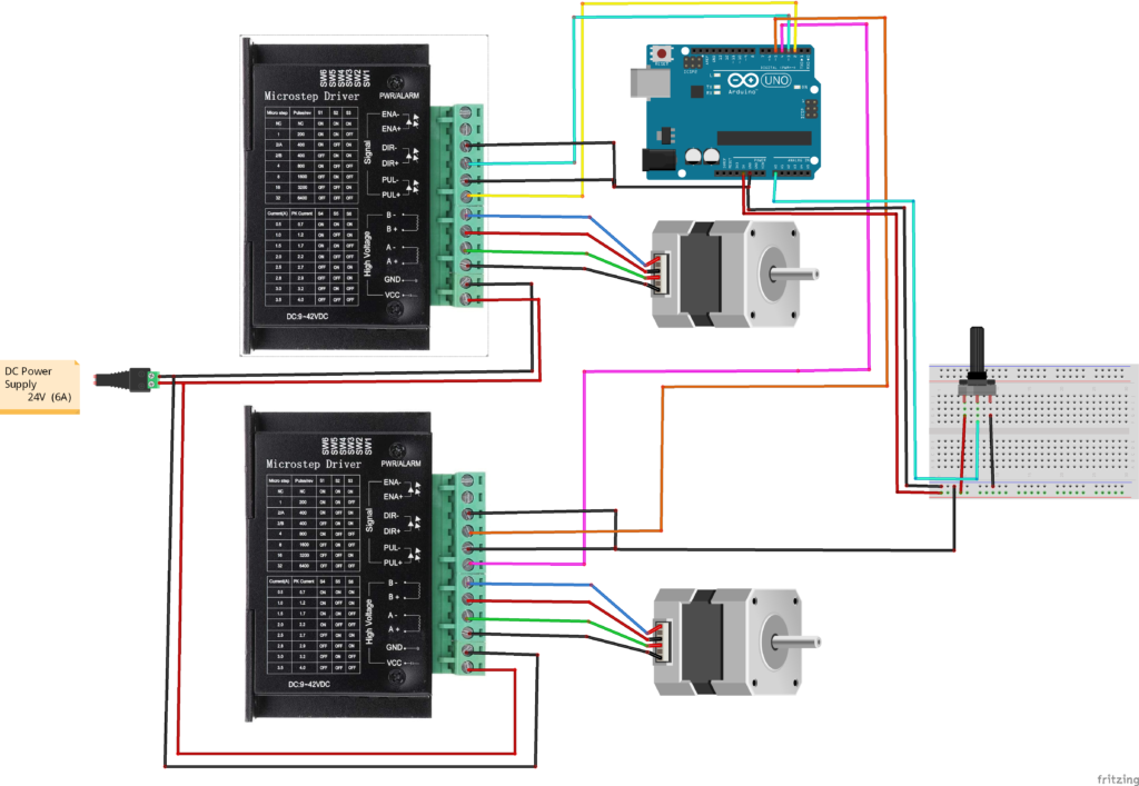 Circuit Diagram of Multiple Stepper Motors with Arduino and TB6600