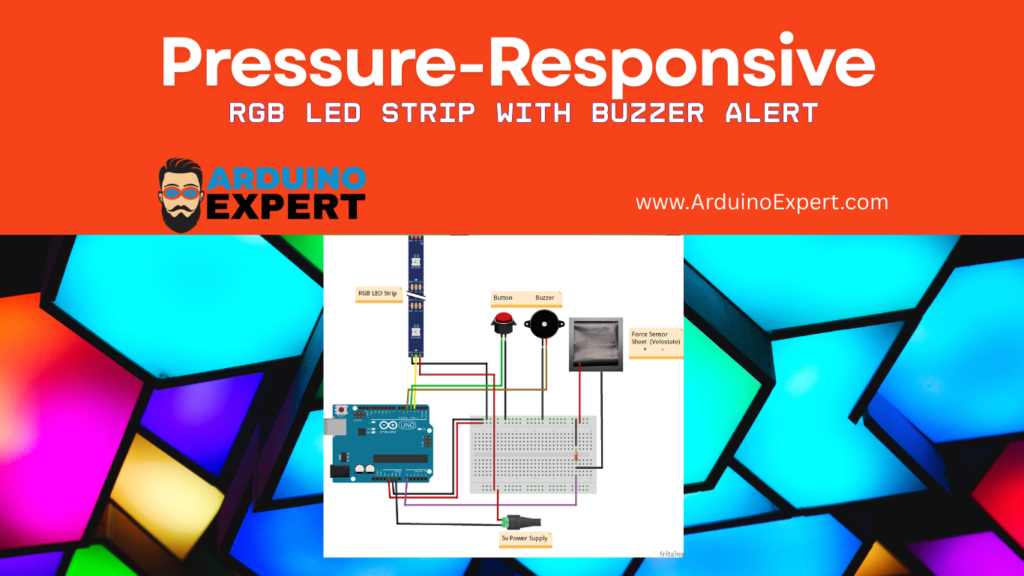 The Pressure-Sensitive RGB LED System detects applied pressure using Velostat and instantly responds with a color change on the RGB LED strip and an audible alert via a buzzer. The project is built around an Arduino microcontroller, acting as the central processing unit that interprets sensor data and controls output devices.